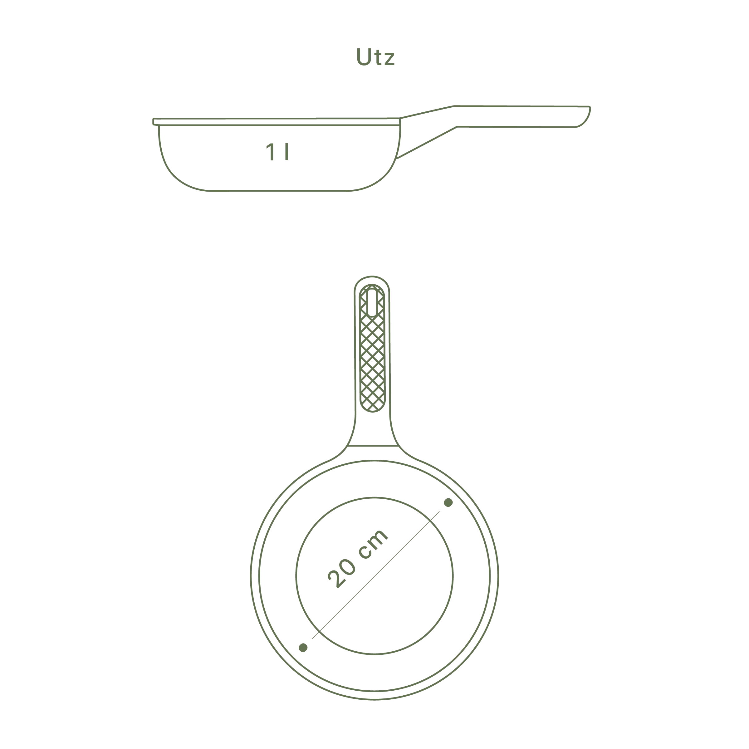 Entdecke die kleine Bratpfanne UTZ von FIVI mit 20cm Durchmesser. Unsere kompakte Bratpfanne bietet die ideale Größe für kleinere Gerichte und passt perfekt in jede Küche. Ausgestattet mit einer robusten STONELINE ®-Antihaftbeschichtung und gefertigt mit 100% recyceltem Gussluminium, sorgt sie für gleichmäßige Wärmeverteilung und fettfreies Kochen. Geeignet für alle Herdarten, auch Induktion, ist die Bratpfanne UTZ perfekt für vielseitige Küchenabenteuer.