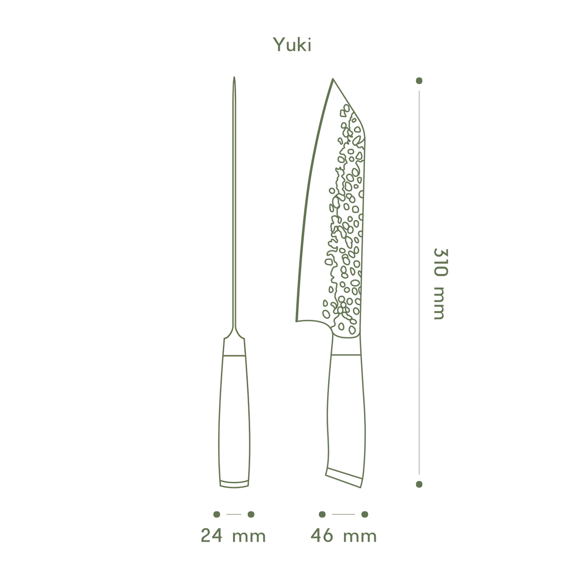 YUKI, das asiatische Kiritsuke Messer kommt in Deine Küche! YUKI verbindet deutschen Stahl mit asiatischer Messerkunst und holt das Beste aus beiden Kulturen für Dich heraus. Dank Hammerschlag und ergonomischem Pakkaholzgriff überzeugt unser Kiritsuke YUKI mit seiner Schärfe und Ästhetik. Dank der scharfen, robusten Klinge mit feiner Spitze kannst Du sauber filetieren, aber auch größere Schneide arbeiten problemlos durchführen.