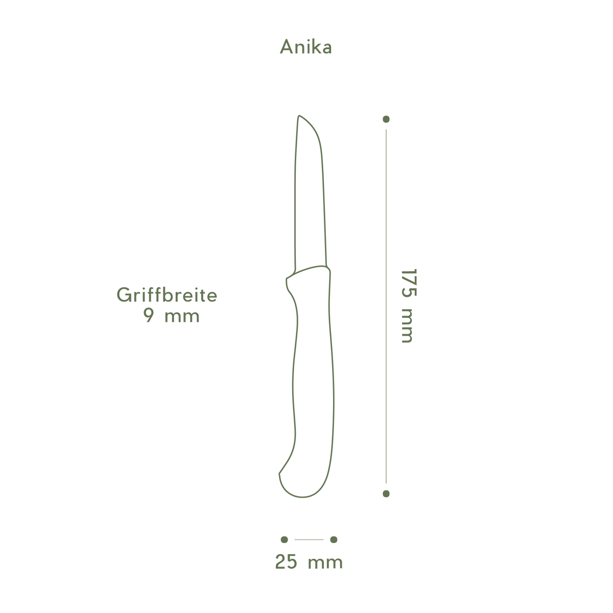Entdecke ANIKA, unser kleines Schneidemesser aus hochwertigem Edelstahl. Perfekt für Obst und Gemüse, mit außergewöhnlicher Schärfe und Langlebigkeit. Der Kokosgriff sorgt für angenehme Haptik. In Solingen gefertigt für präzise Schnitte und beste Qualität. Ein unverzichtbares Werkzeug für deine Küche!